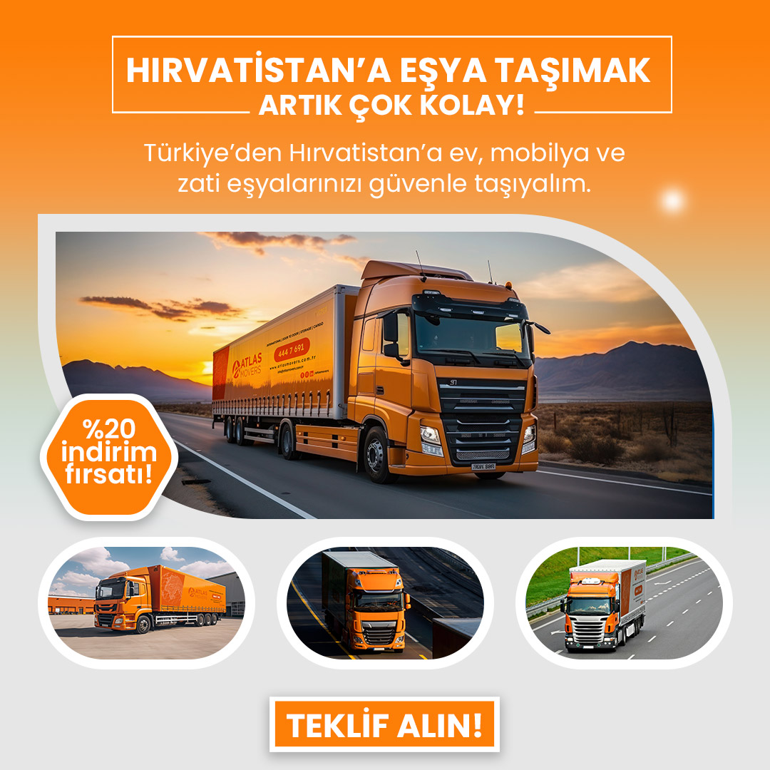 Hırvatistan’a taşınırken profesyonel destek almak, tüm süreci sorunsuz ve güvenli hale getirir. Atlas Lojistik olarak, Türkiye’den Hırvatistan’a ev taşıma sürecinizde yanınızdayız. Hızlı, güvenilir ve gümrük süreçlerine hakim uluslararası taşımacılık hizmetimizle; eşyalarınız zamanında ve sorunsuz şekilde yeni adresinize ulaştırılır.